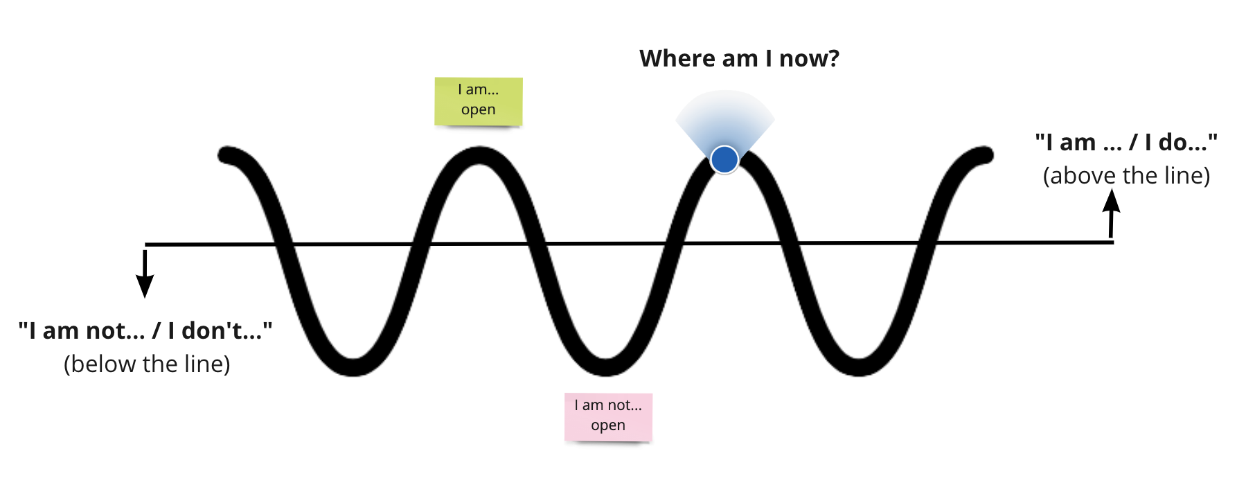 Above the line thinking and behaviours are about being open and curious, having a desire to learn and being able to respond effectively and usefully in any given situation. These positive behaviours include: