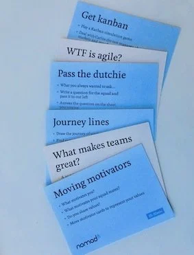 Over time I have collected a large number of activities for team building, learning and visioning. I have turned each of these activities or talks into a card: