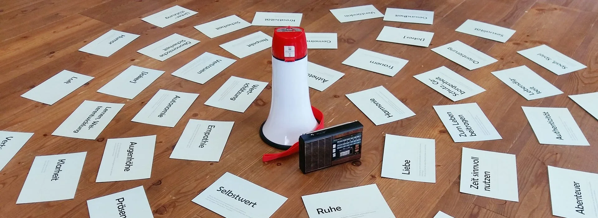 Once relational tensions have been prioritised they are processed one by one using techniques from NVC and reflective listening. Processing a tension starts with the person feeling the tension grabbing a (turned-off) megaphone and the affected person a radio receiver (if it’s more than one person it’s one representative). The sender and receiver then take turns talking and reflecting back their understanding of what they have just heard. Once they have a shared understanding of the issue they analyse which needs have been left unmet and find a way for both parties to develop strategies that can meet everyone’s need(s).